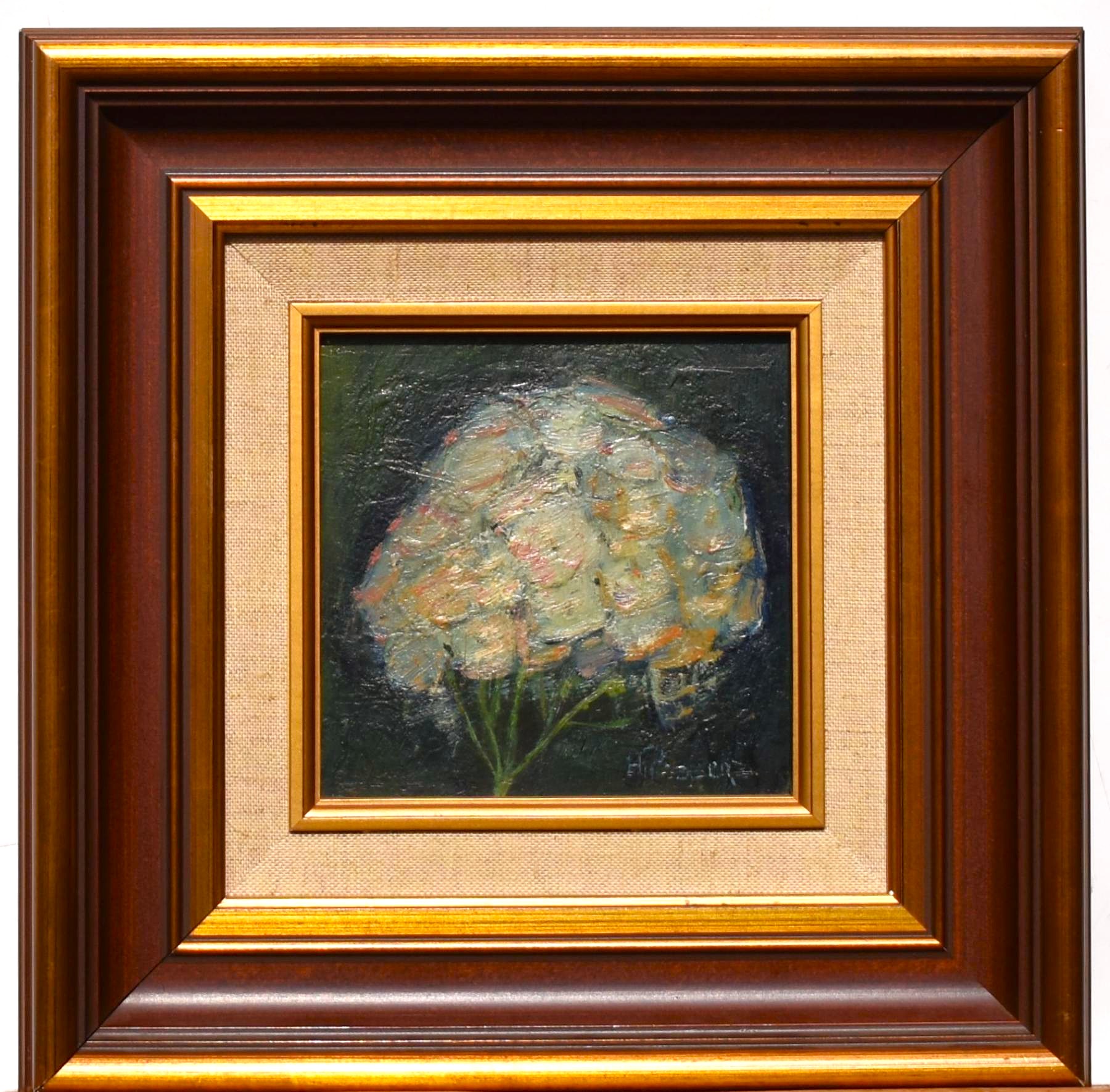 Wonderlijk werk van Henriëtte Pessers uit de twintiger jaren van de vorige eeuw. Een mystiek, hermetisch afgesloten bloemstilleven. Verfijnde schoonheid, stil en in zichzelf gekeerd. Bloemen, symbool van kwetsbaar, liefdevol leven. Een benadering, ook herkenbaar in haar landschappen en werken met fruit. Geheimzinnige stilte is daar alomtegenwoordig.