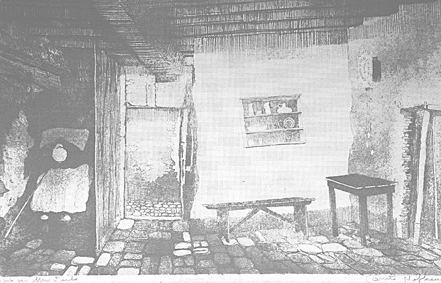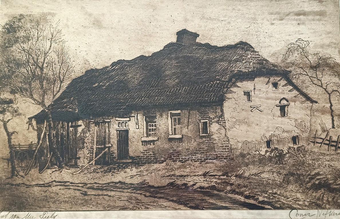 Overwint de kunst het leven? Of brengt het alleen schrale troost? Hoe dan ook, Constant Nefkens (1887-1929) blaast de hut door zijn kunst tijdloosheid in. De ets, vergezeld door al het andere historische materiaal, spreekt tot de verbeelding ook door alle verhalen en personen, die er ooit actief waren. Schoonheid die door haar verfijnde samenhang doorklinkt in de ruige boerse eenheid van alle details. De twee hier geplaatste foto’s van de ets geven alleen een voorproefje. De verfijnd geëtste schoonheid van de stoere herberg is in die foto’s niet te zien. Schoonheid kan immers alleen ontstaan in de directe ontmoeting tussen de ets -als medium van de kunstenaar- en de vonk van de verbeelding van de erdoor bewogen kijker.